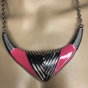 Robert Rose Statement Necklaces Large Bib Silver Toned and Neon Pink