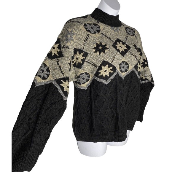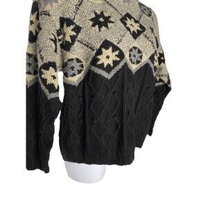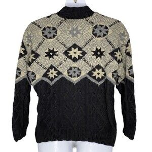 Robert Scott Sweater Sz XL Ski Black Blue Wool Blend Chunky Knit