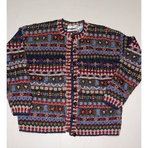 Robert Scott hand knitted Cardigan Wool Blend Style Multicolor Womens M