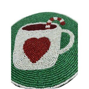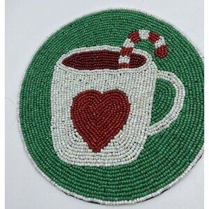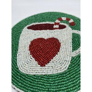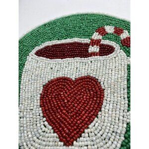 Robert Stanley Beaded Round Trivet Love Heart Mug Candy Cane Holiday 8”x8”