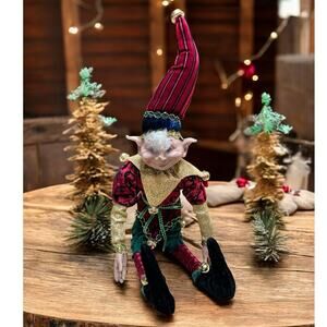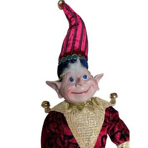 Robert Stanley Elf Figure Posing Christmas 23” Gold Red Clothing Bells Bendable
