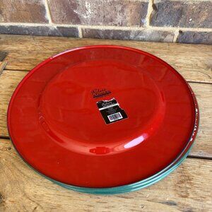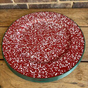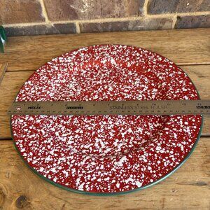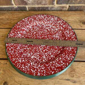 Robert Stanley Enamelware Serving Plates Chargers Red White Speckled Green Edge