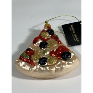 Robert Stanley Slice Pizza Hand Blown Glass Christmas Ornament 4” Lot Of 3