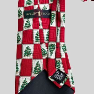 Robert Stock 100% Silk Christmas Tie Festive Red and Green Christmas Tree Tie