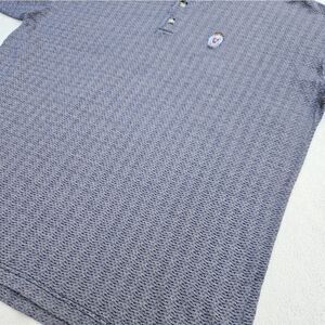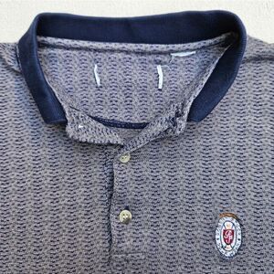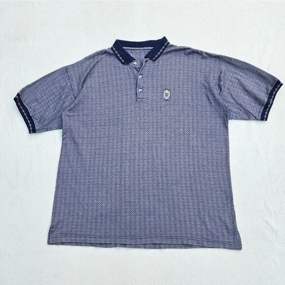 Robert Stock Golf Wear Blue and Beige Striped Polo Short Sleeve Shirt