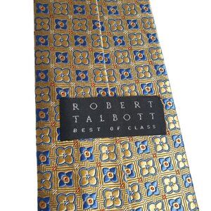 Robert Talbott Best of Class Mens Silk Tie Yellow Blue Floral Pattern Designer