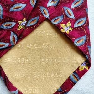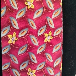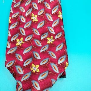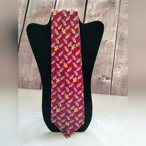 Robert Talbott Best of Class Necktie Tie Silk Red Yellow Flowers Leaf Classic T