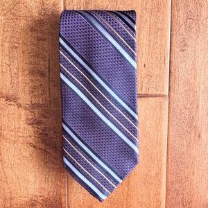 Talbott 100% silk tie diagonal stripes in purple, gray, blue and bronze stones. 3.3." x 59"