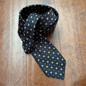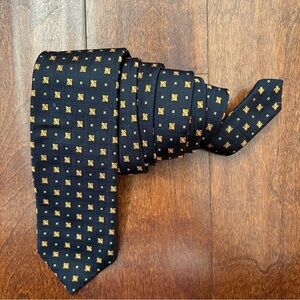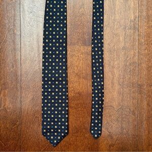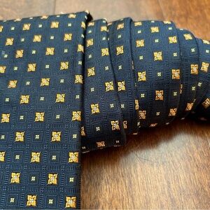 Robert Talbott Carmel Woven 100% Silk Tie, Navy and Orange, Hand Sewn in the USA