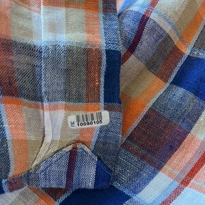 Robert Talbott Carmel plaid button-down shirt. Blue orange white. Men’s XL.