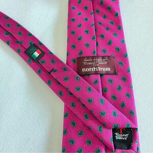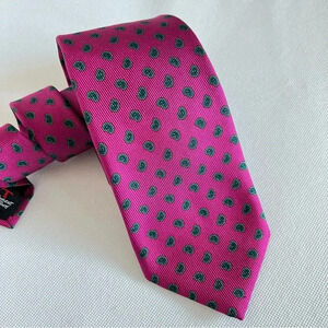 Preowned, Possible Vintage Robert Talbott For Nordstrom Necktie Geometric mini paisley Print Fuchsia/Green