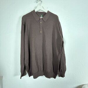 Robert Talbott Mens Brown Merino Wool Button-Down Collar Polo Cowell Sweater XXL
