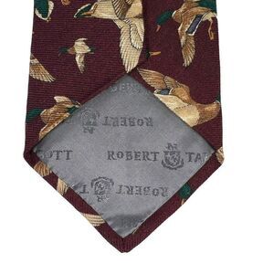 Robert Talbott Men's Necktie Silk Wool Burgundy Red Turkeys Thanksgiving in good pre-owned condition.