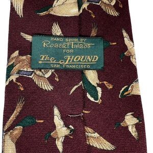 Robert Talbott Men's Necktie Silk Wool Burgundy Red Turkeys Thanksgiving