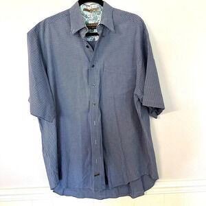 Robert Talbott Men's Short Sleeve Blue Plaid Button Up Shirt Size XL GUC