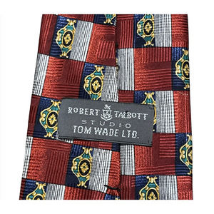 Robert Talbott Studio Mens Tie Red Silver Blue Check Pattern 100% Silk 59"LX4"W