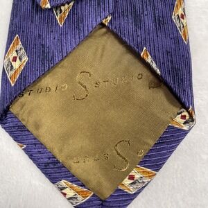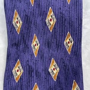 Robert Talbott Studio VTG Silk Repp Tie Purple Gold Diamond Pattern 4" USA