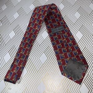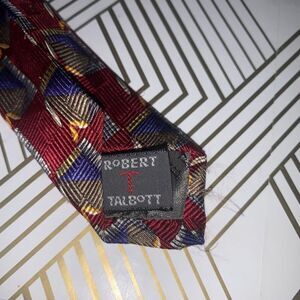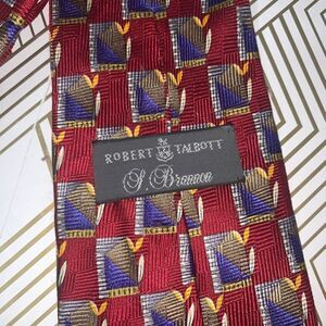 Robert Talbott Geometric Print Mens Hand Sewn Silk Neck Tie Burgundy Blue