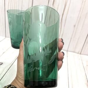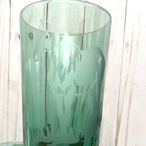 Robert Vavra Vintage Signed Frosted Acid-Etched Horse Green Glass Tumblers Set of 5