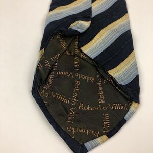 Robert Villini Mens Tie, Black Gold Stripped Silk