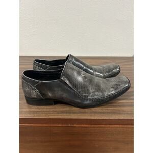Robert Wayne Crash Mens Grey Leather Slip-On Square Toe Loafers Shoes Size 11