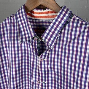 Robert X Graham Shirt Mens 2XLarge Blue Orange Gingham Check Tailored Fit