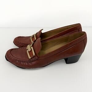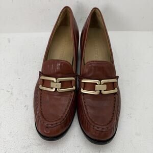 Robert Zur Brown Leather Heeled Loafer Gold Women's Size 9.5