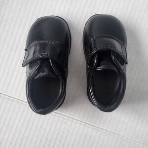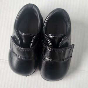 Robert david black dress shoe toddler Boys 3m (tiny) Velcro closure small scuff by tongue of shoe (pictured) preowned would be good for Easter wedding or formal dressy event