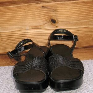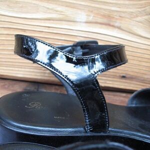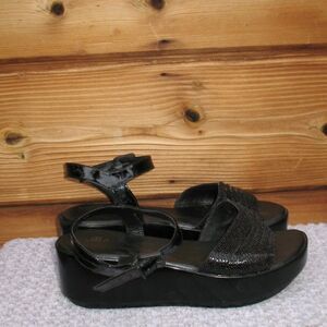 Very good condition. There are some marks on the patent upper and the platform of the shoes.