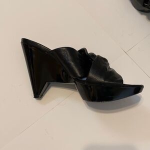 Robert Clergerie Dahra Wedge sandals with black leather upper. These shoes are hand made one by one, not massed produced. The leather is soft and supple. Please check measurements these tend to run small. Worn once.