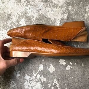 These are super comfortable made in France shoes. Please look at the pictures as they are not new but I think any good shoe man would be able to stay in the front so it wouldn’t show. Does not show when you are wearing.