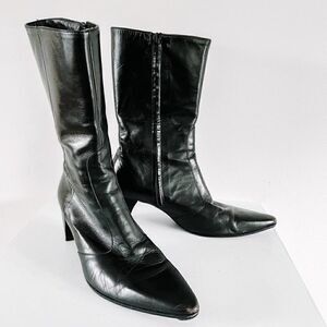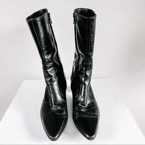 Robert Clergerie Black Zip Up Mid Calf Pointed Toe Heeled Boots Sz 8.5