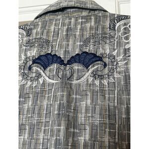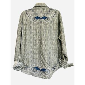 Elevate your wardrobe with this Robert Graham Limited Edition shirt! Featuring a unique gray and blue color scheme and intricate front/back embroidery, this shirt is a true statement piece.
