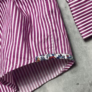 Robert Graham Modern Americana Premium Stripe Shirt Mens XL Red Fitted Flip Cuff