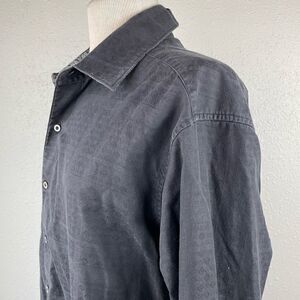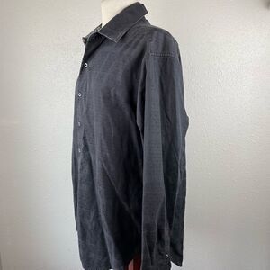Great charcoal black button down shirt measuring 24 inches across the chest laying flat and 31 inches in length from shoulder to hem.