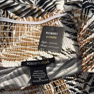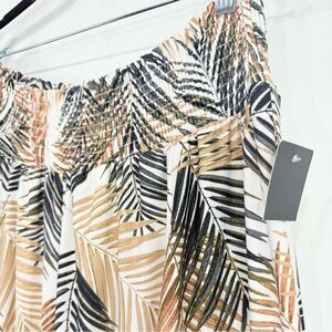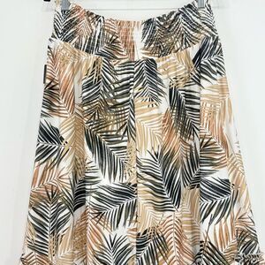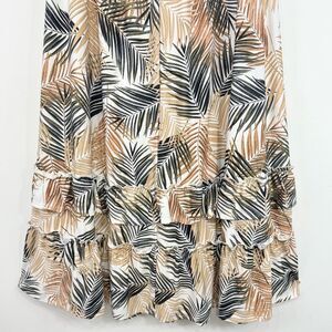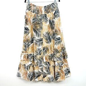 Robert Louis White Brown Tropical Palm Leaf Print Iered Ruffle Maxi Skirt NEW