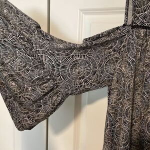 Robert Louis black and white cold shoulder dress with ruffled sleeves.
