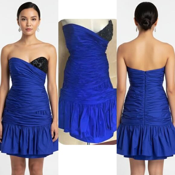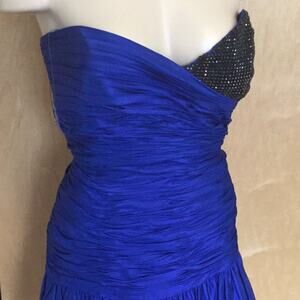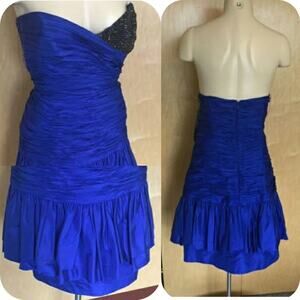Robert Rodriguez strapless dress with embellishments at bust, ruching throughout and back zip closure.