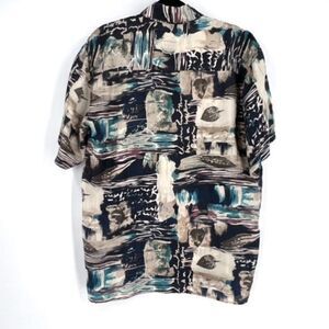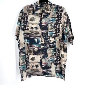 Robert Stock Mens Silk Short Sleeve Button Down Hawaiian Shirt Multi Size Medium