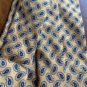 Very beautiful silk tie by RT. Gold, navy, cream and a tiny bit of orange.