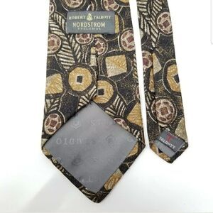 Robert Talbott Nordstrom Mens Brown Golden Leaf Geometric Print Classic Neck Tie