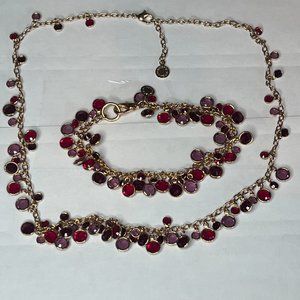Roberta Chiarella Swarovski Red Purple Stone Gold Tone Necklace & Bracelet Set