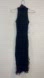 Long body-hugging dress with a high collar and gradient soft tassels from below the hip.