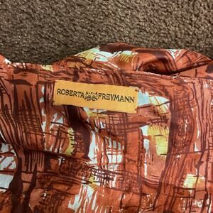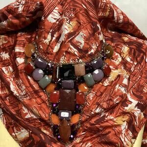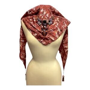 Roberta Freyman Orange Print Jeweled Boho Artsy Tassle Neck Scarf Shawl