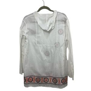 Roberta Freymann Women's Tunic Coverup V Neck White Orange Hood Embroidered Large Blouse