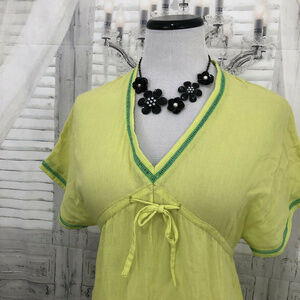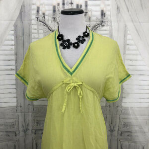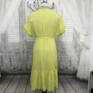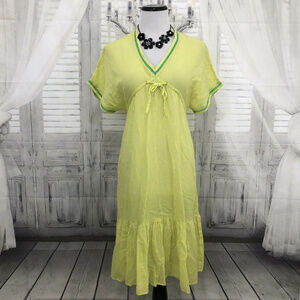 Roberta Freymann Yellow Green V Neck Cotton Dress