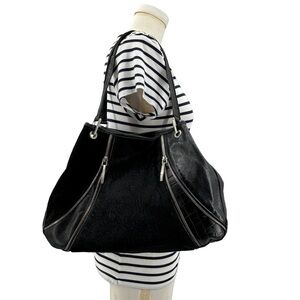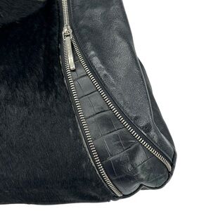Roberta Gandolfi Black Leather & Calf Hair Hobo Bag Embossed Reptile & Zippers