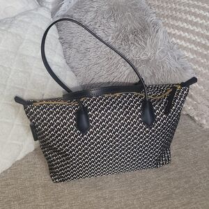 Beautiful R. Pieri bag, Italian made..canvas and leather, new!!!!. This elegant tote bag features a striking black and white checkered pattern, complemented by sleek black leather trim and handles. Its structured design and spacious interior make it perfect for everyday use, while the zippered top closure ensures your belongings stay secure. The combination of classic and modern elements gives this tote a timeless appeal.