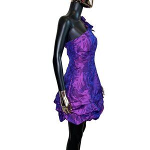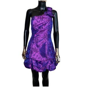 Roberta Purple One-Shoulder Jacquard Mini Dress Holiday Party Cocktail Glam Sz 6