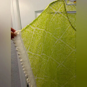 In perfect condition Lime green and white pattern with white Pom Pom border trim